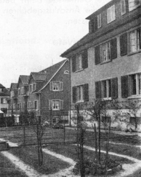 1926 brauchte es Mut, weit ab vom Dorf, mitten in Wiesen und Baumgärten, neuen Wohnraum zu schaffen. Die Wohnungen sollten nicht primär komfortabel, sondern vor allem erschwinglich sein. Für den täglichen Bedarf entstanden zugleich ein Lebensmittel- und ein Bäckereiladen.