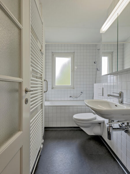Warmwasser und ein Einbaubad mit neuem WC statteten jede Wohnung aus. Ersetzt wurden elektrische und