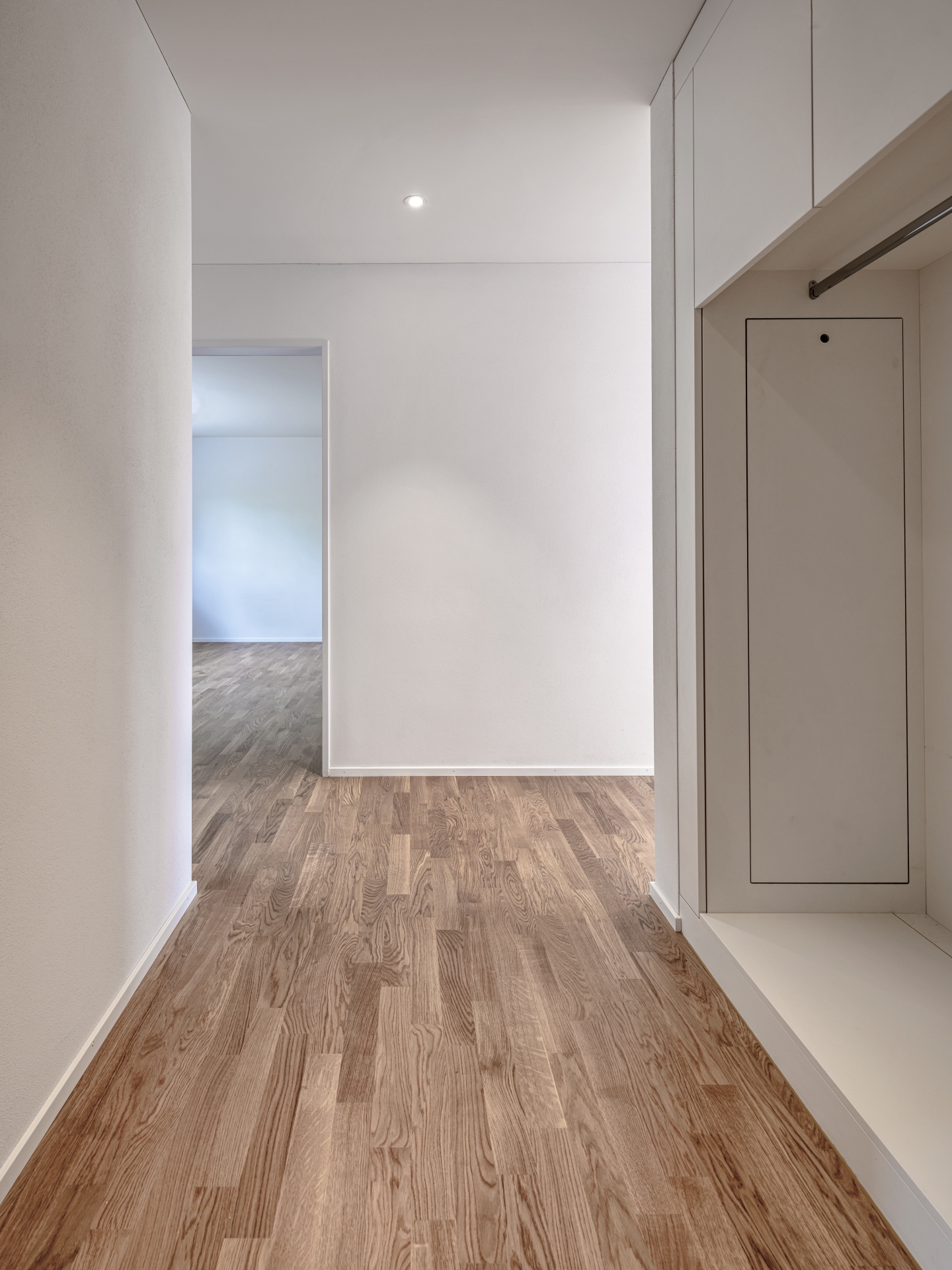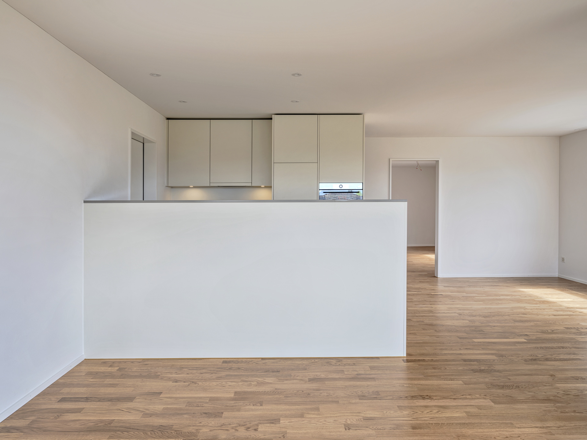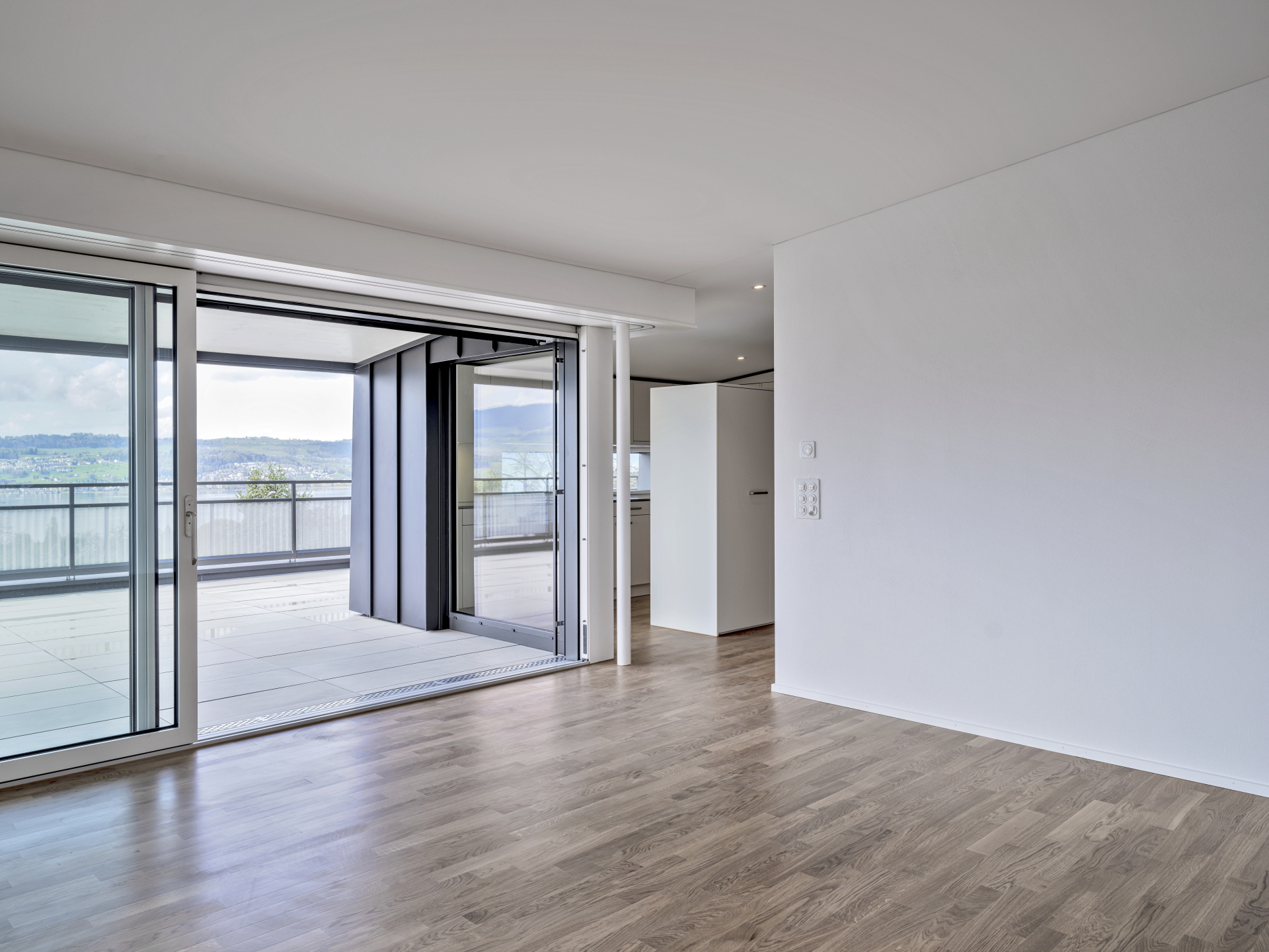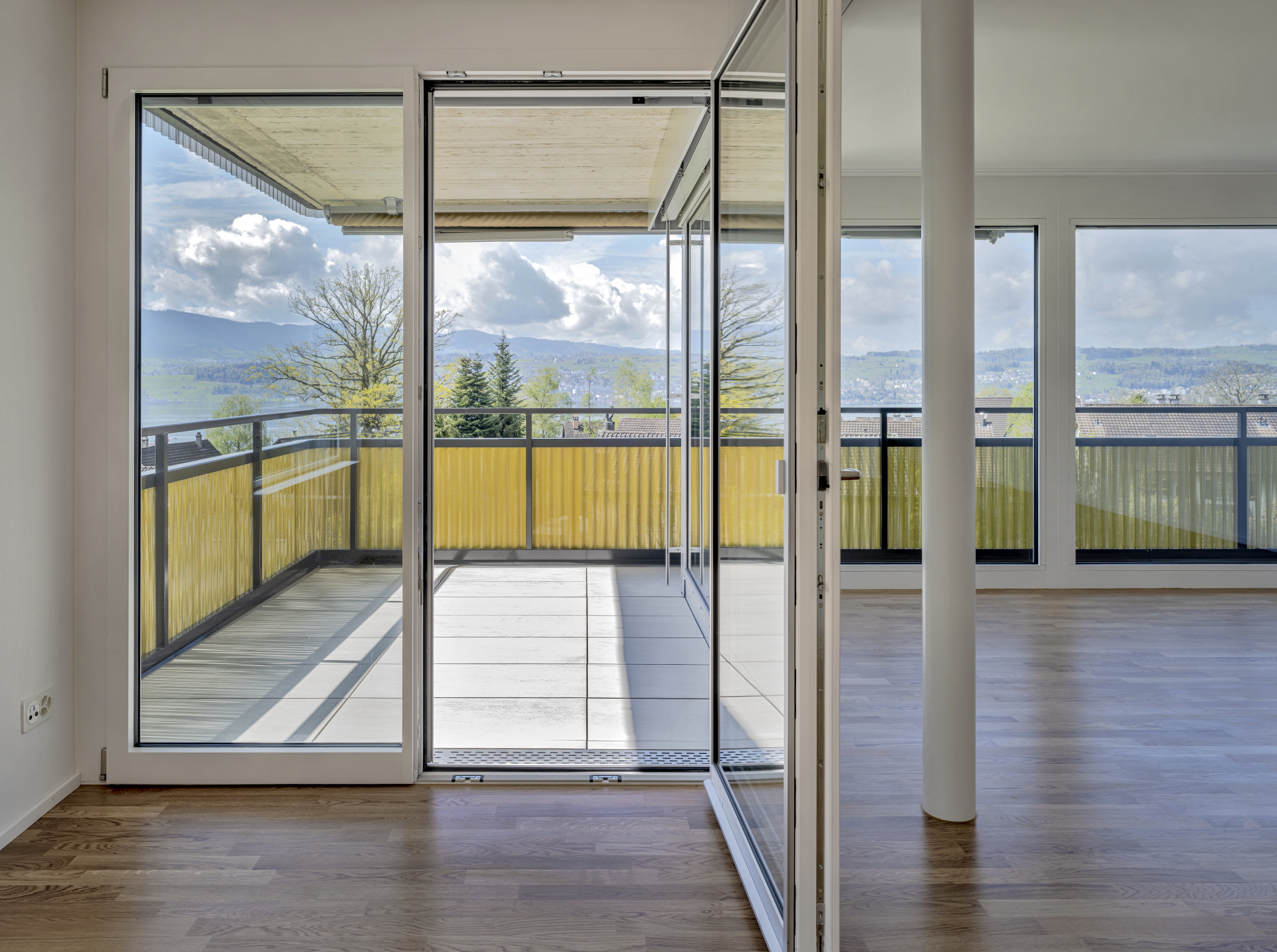 In den Obergeschossen befinden sich vier 2.5- und zwölf 3.5-Zimmer-Wohnungen. Ein Teil der Wohnungen ist zweiseitig orientiert, andere nach Norden ausgerichtet, mit ausreichend Ausblick auf die Berglandschaft. Die Attikawohnungen verfügen über grosszügige Dachterrassen mit uneingeschränkter See- und Weitsicht. Die Wohnräume inklusive Küche sind mit Parkettböden und die Nasszellen mit Plattenbelägen belegt. Zudem verfügen die Nasszellen über eigene Waschtürme. Die offenen Küchen sind mit modernen Geräten von V-Zug und je nach Wohnungstyp mit einer Kochinsel ausgestattet.