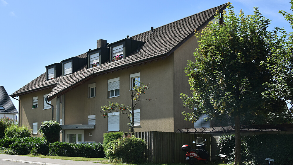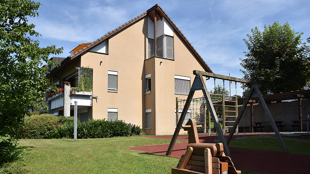 Zwei Mehrfamilienhäuser mit 2,5- und 4,5-Zimmerwohnungen. Unterniveaugarage (30 Einstellplätze) und 6 Aussenparkplätze. Kinderspielplatz.