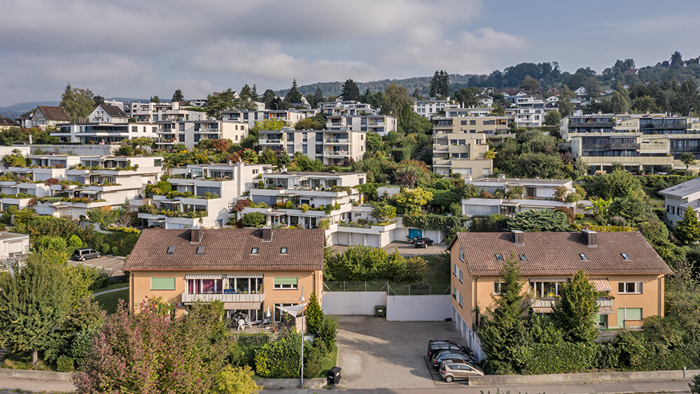 Zwei Mehrfamilienhäuser mit 1,5- und 4,5-Zimmer-Wohnungen. Garagenboxen mit 6 Einstellplätzen und 3 Aussenparkplätze.