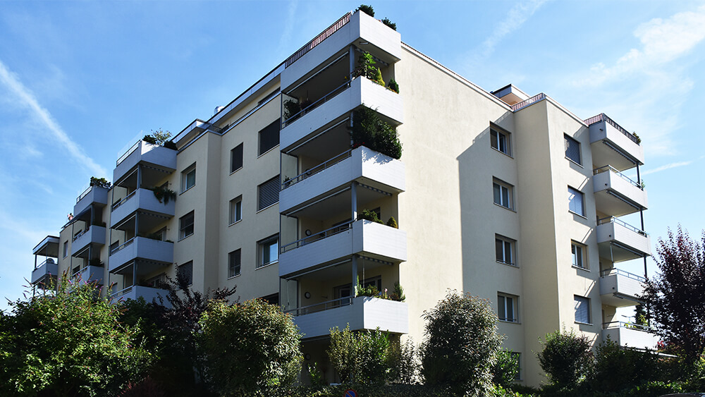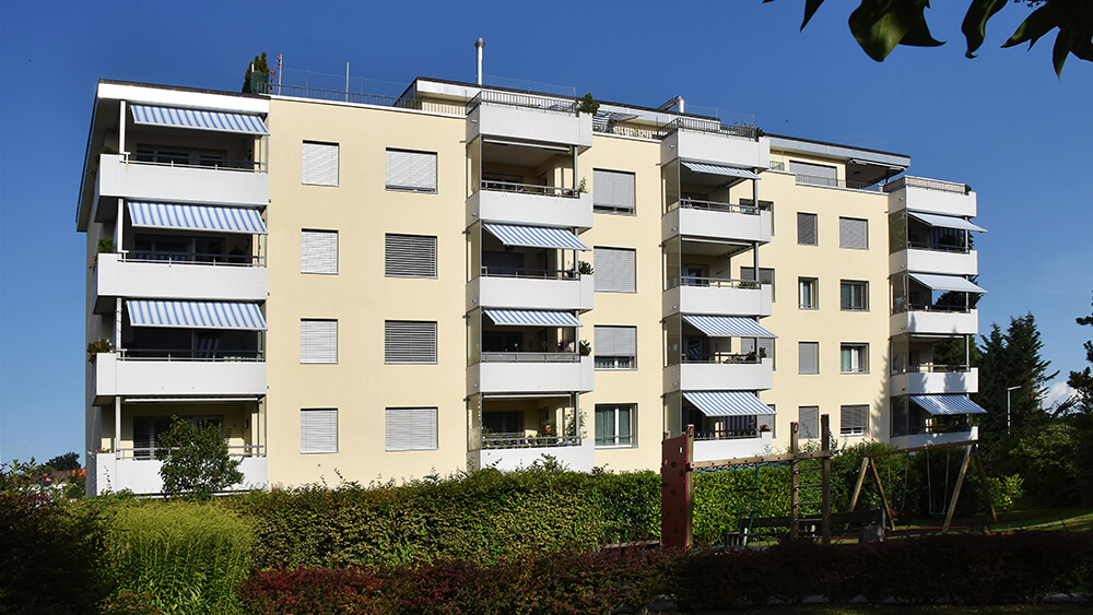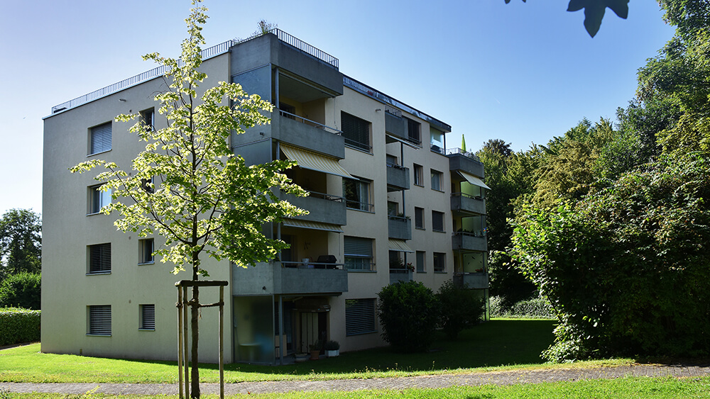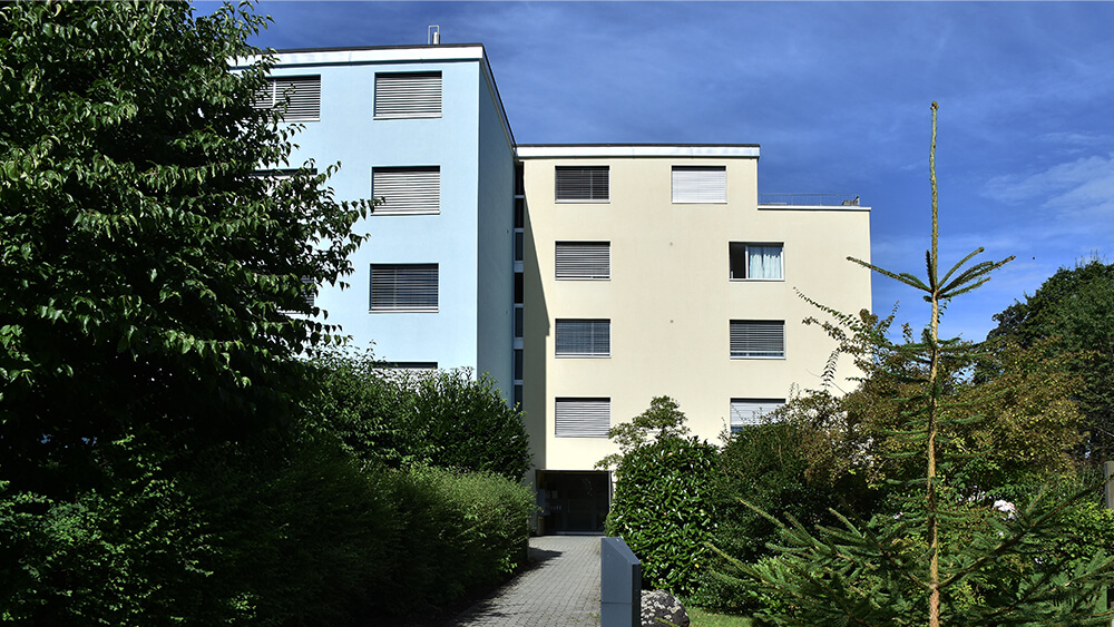 Zwei Mehrfamilienhäuser mit 1,5- bis 5,5-Zimmer-Wohnungen. Ausgestattet mit Lift und je einer Unterniveaugarage (gesamthaft 47 Einstellplätze). Kinderspielplätze. Bastelräume können dazugemietet werden.